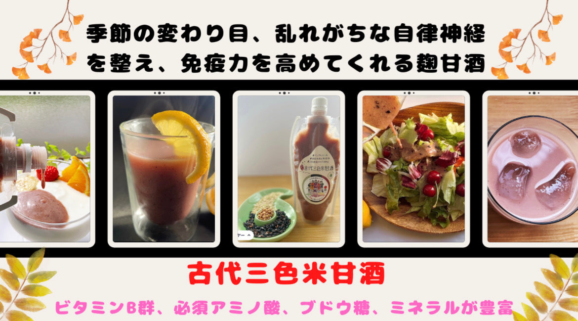 通常のよくある甘酒は苦手で、飲んでこなかったのですが、この発酵甘酒は、何杯でも飲みたくなります。特に、古代三色米甘酒は、私のお気に入りで、豆乳で割って愛飲しています。 玄米の甘みと香ばしさが、くせになる美味しさです。 小山さん・60代自営業&ムサシくん