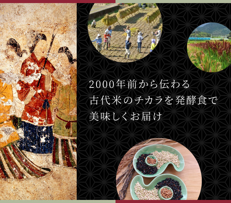 約2000年前に日本に伝来したとされる稲の原生種を受け継ぐ、自然農法の「飛鳥古代米(赤米・黒米・緑米)」を様々な「無添加発酵食」として展開していく郷土愛から人類愛へ。地元飛鳥で自然発酵食の魅力を発信する「飛鳥美人発酵堂」です。